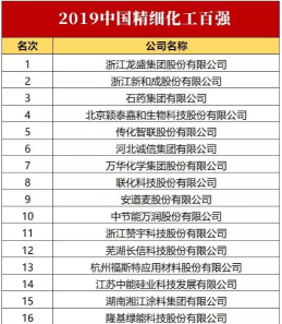 附“2019精细化工百强”名单: